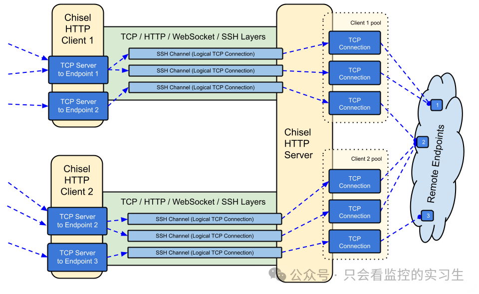 一个二进制文件 chisel = 客户端 + 服务端,跨平台(Win/macOS/Linux),无需 root,支持 UDP,自动穿代理,断线 0 感知。