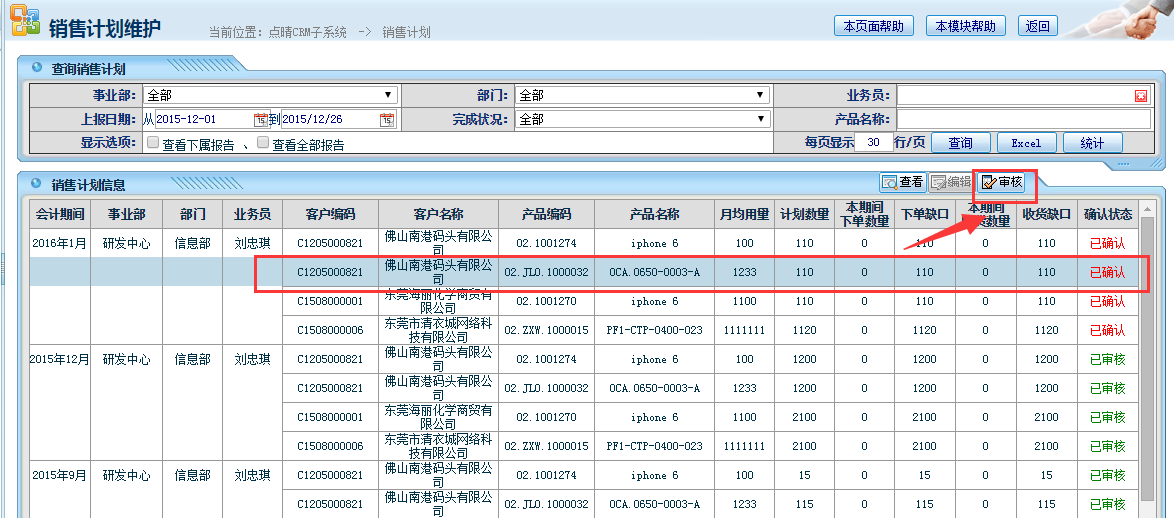 点晴CRM客户管理系统销售计划录入、修改、审核