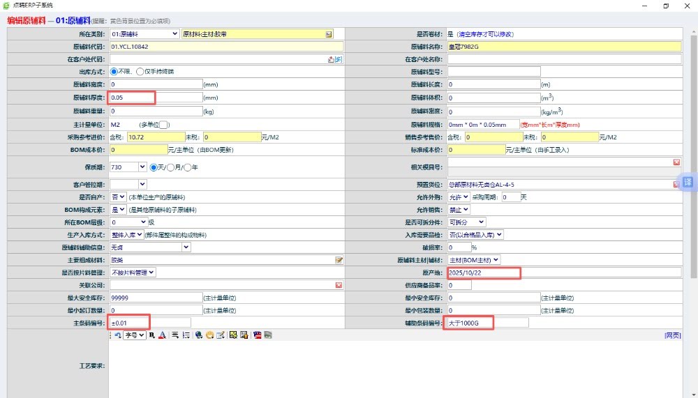 每个材料的厚度和公差、剥离力标准、环保有效期我在物料信息这里输入后,能直接在来料检测报告上体现出来吗 答:针对这个问题可以先在“系统管理”》“物料信息维护”中找到对应物料,然后对物料信息进行编辑,如:物料厚度、主条码编号和服辅助条编码进行修改。 然后重新在“仓库管理”》“物料入库管理”》“采购入库管理”里点击查...